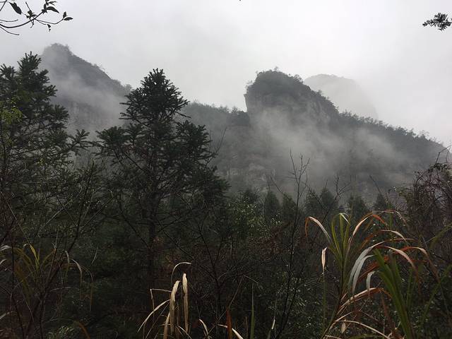我们大概走了半个小时,走着走着,前一分钟还都是雾气的,没想到马上就冒出来一座座山头,令人惊喜万分
