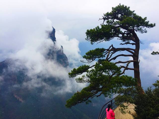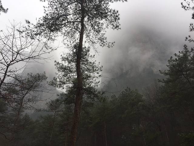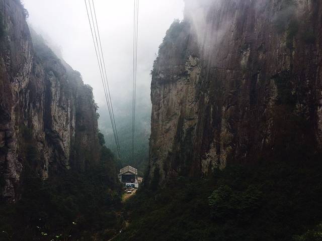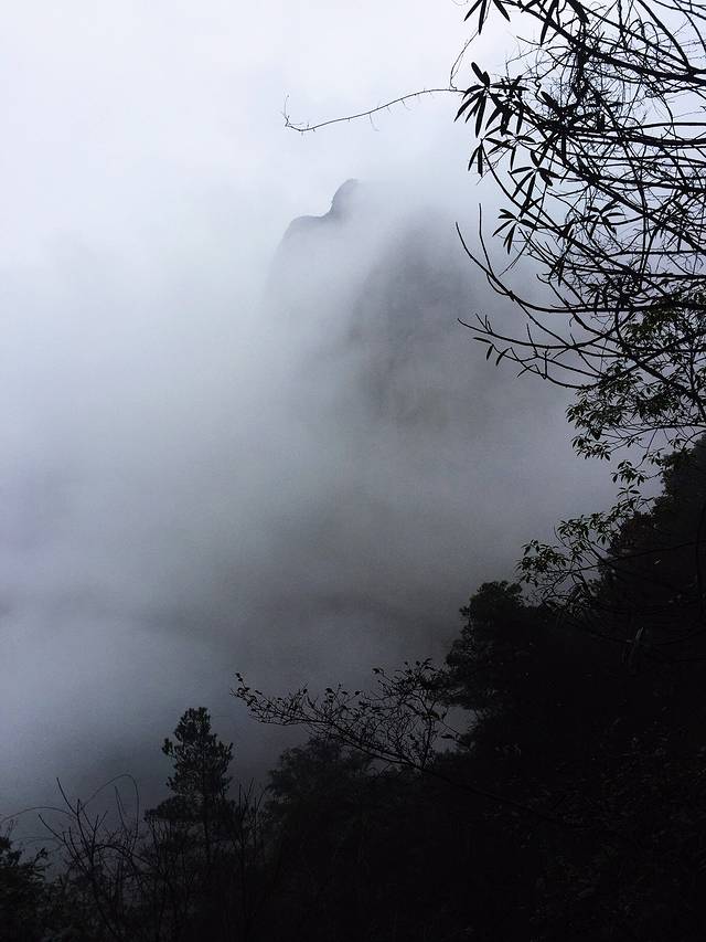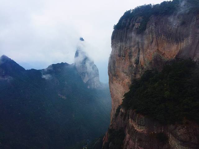 看,下面万丈深渊,远处刚刚还啥都看不见,马上又露出来一点尖儿,原来那个是观音峰,