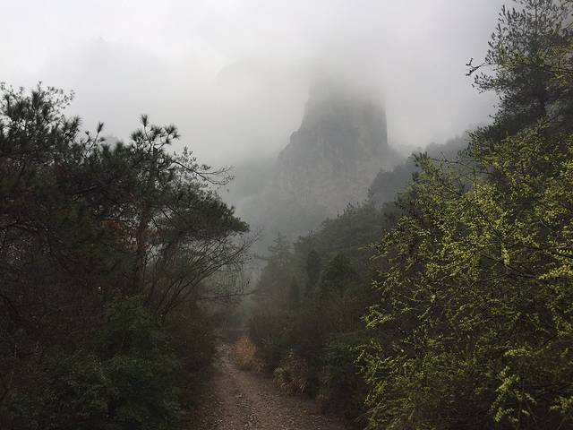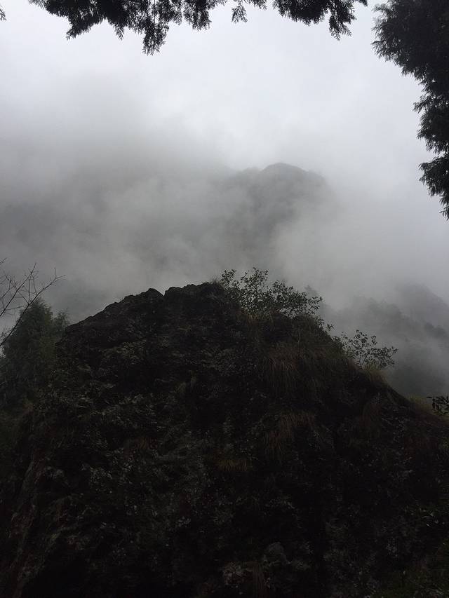 大概八点吧,我们就到了神仙居景区北大门,当时天气好像刚刚下过小雨,一直还都是大雾,车上旅友嚷嚷着啥都看不见