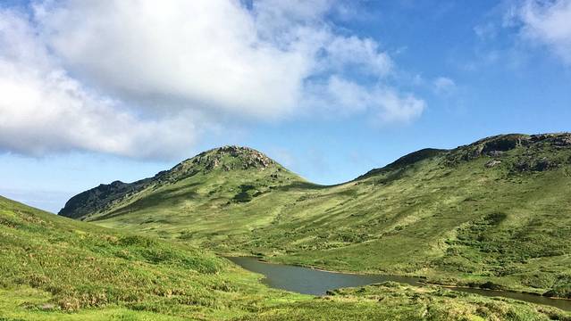 从水库边的路上,往上爬,一路上都是有指示牌的,爬过一座山,就可以看到小天湖了