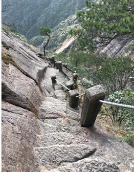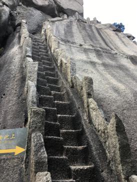接着你就可以直奔光明顶了,作为三大主峰之一,山上的景色真是如诗如画。其他山峰尽收眼底。站在光明顶往南看,莲花峰和天都峰近在咫尺。就连鳌鱼峰也看的真切。因为时间关系,我舍弃了这座没有太多特色的山峰。从光明顶下来经过莲花峰,因为在封山,只能在山下欣赏它的壮美,途径百步云梯去往迎客松的方向。路上观看莲花峰,风景如画。百步云梯在一龟一蛇中间,说是由它们守护着云梯。再往前走看到黄山表面不断被侵蚀露出的花岗岩峰林,看到黄山表面的光滑山体,感叹大自然的鬼斧神工,奇险秀丽。登鳌鱼峰有个非常险的山路叫一线天,大概只能容纳一人通过,当然爬黄山一定不是奔赴各个景点,最美的风景都在路上,爬山过程中,抬头的一瞬间都可以被震撼到,秀丽、壮美的山脉,江山如画,美得不可方物。