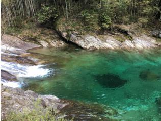 身在景区里,早晨起来就可以感受鸟鸣山更幽,清泉石上流。翡翠人家的房子徽派和现代的结合,干净明亮,对面青山绿水,鸟鸣泉溅声不绝于耳,令人心旷神怡。 进入翡翠谷才感受到名副其实,园中空气清新,山泉清澈见底,池中流水宛如翡翠一般。