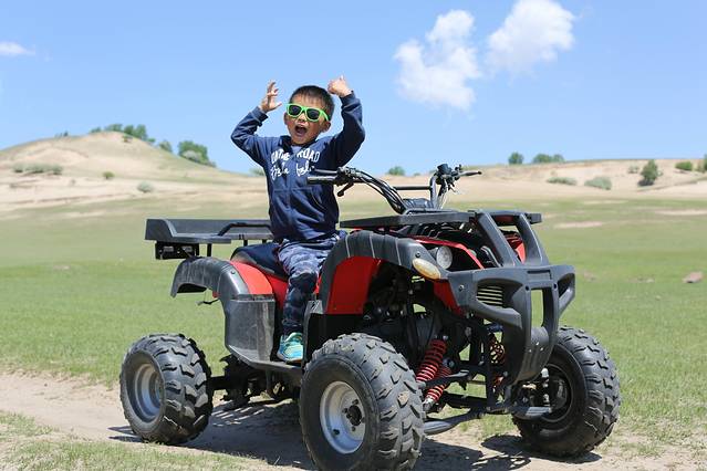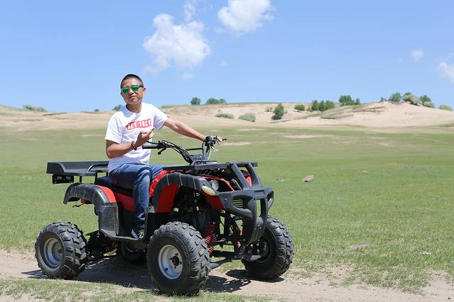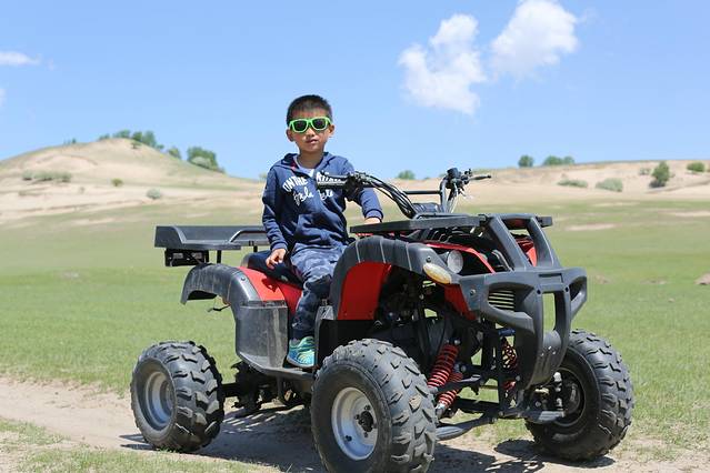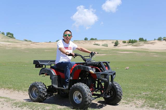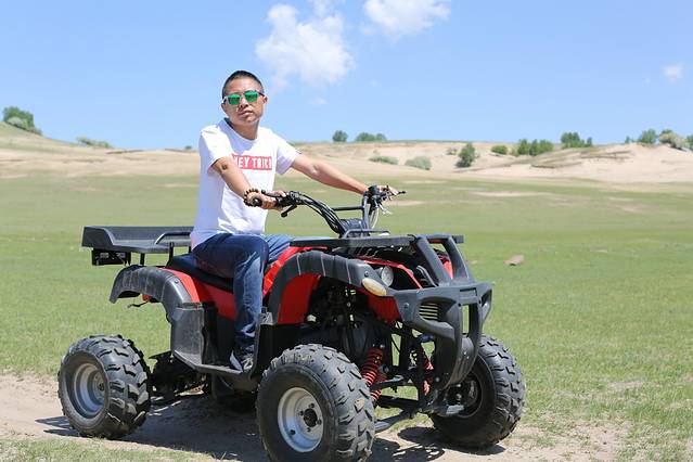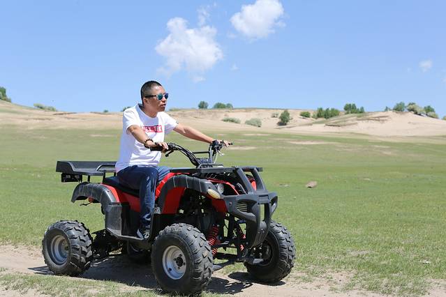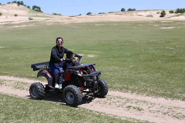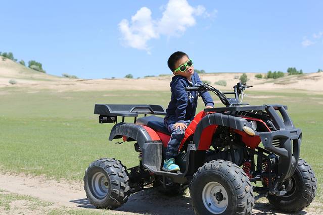 关于玩,怎么说呢,我对玩也不是很期待的人,我其实就是喜欢摄影,不过这次回去的路上还是玩了一会骑马和四轮沙滩车,的确很不错哦。骑在马上,信马由缰的感觉,我想策马奔腾,但是不敢哈哈哈哈。四轮车很爽,据我儿子说,那是超级无敌爽到爆。也都不贵,骑马玩了半小时50,四轮车也是50,草原的人都很实在,走的时候我其实也留了放马师傅的电话,不过我觉得草原的马挺多的,随便找个地方骑就行了。