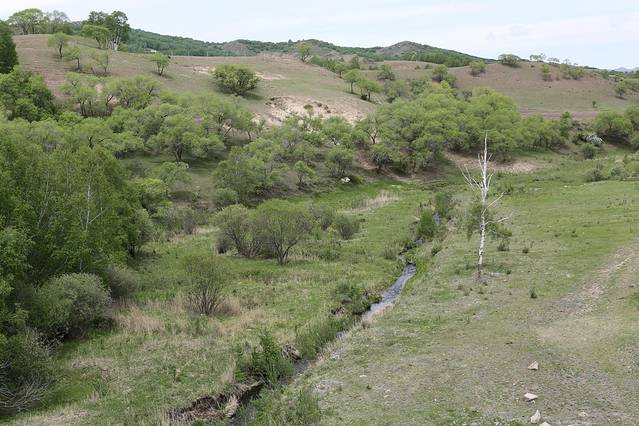 值得重点说明的是到达御道口后,绕行大河口那条路线,从大河口乡卫生院右拐,一路大概经过红花山村、大迎峰村、撅尾巴村,过了撅尾巴村,会遇到第一个岔路口,选择右面的岔路“克什克腾旗”方向,然后走一公里左右,会遇到第二个岔路口,选择左面的岔路乌兰布统方向,然后一直走就是乌兰布统景区收费站了,交完120的门票,继续直行50公里就会到达红山军马场。由于当晚我们住宿是定的烟子窑的牧民家,从红山军马场大概走7公里到达住处。