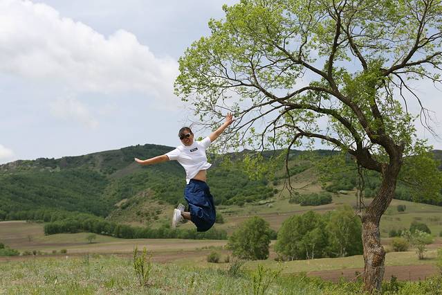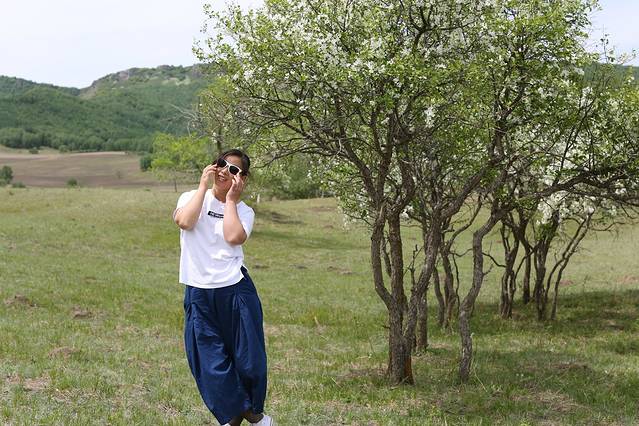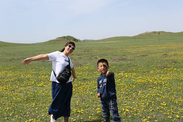 Day2:吃完早点出去玩,由于刚到草原,感觉处处都是景点,走了一会感觉这里好看就下来拍照,又走了一会,又哇,好好看哦,又下来玩耍拍照,结果就是第一天我们就去了两个景点,将军泡子和影视基地,但是我们玩的很开心,随心所欲,哪儿好看哪儿停,任性。