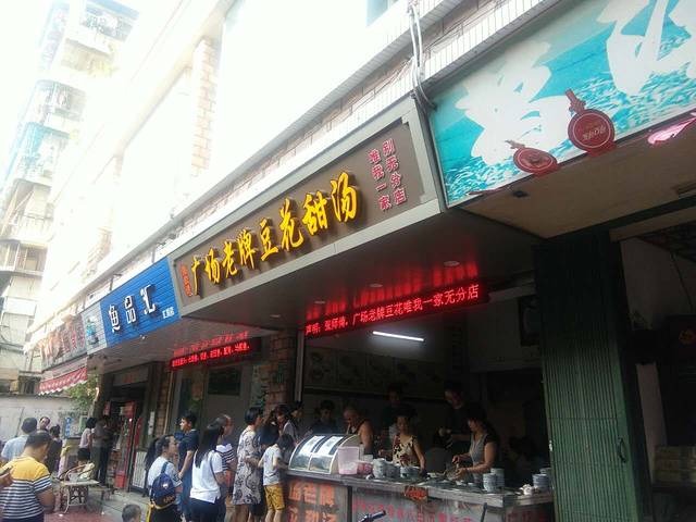 在观海长廊对面的人民广场的一个巷子里面,看见排了很多人的店铺就是这家豆花店,5份豆花2份甜汤合计40元,味道还可以~