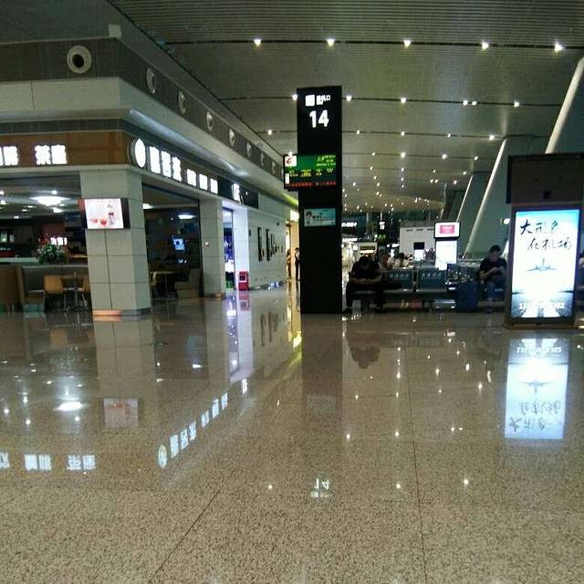 揭阳机场人不多,里面有好几家卖特产的,吃的店子比较少,没有肯德基麦当劳~