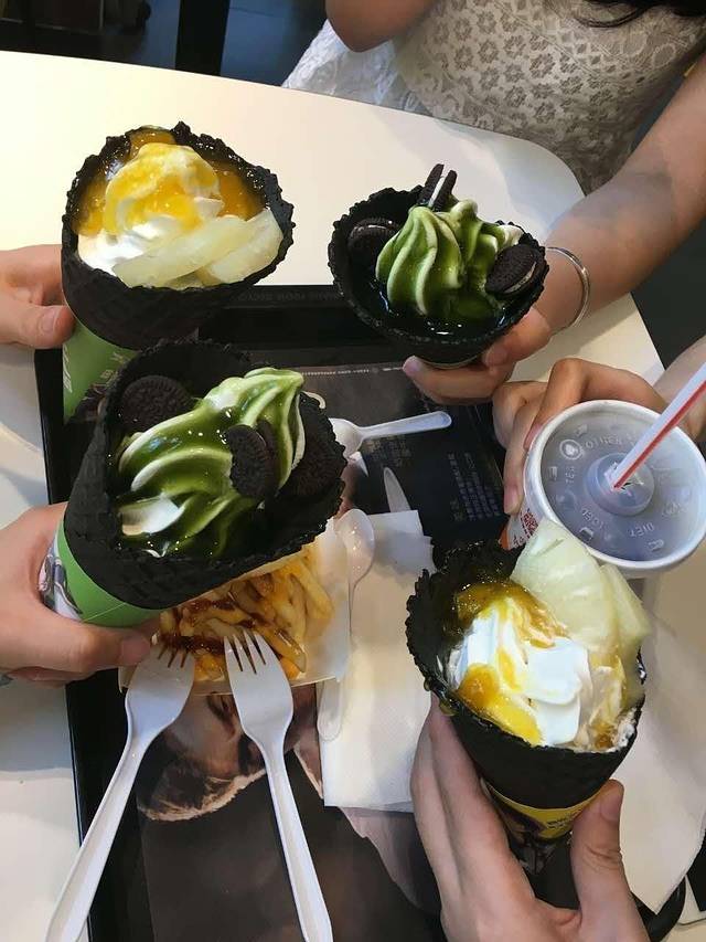 在迷路的途中看见了一家生意很好的甜品店,我们又忍不住尝了一下。