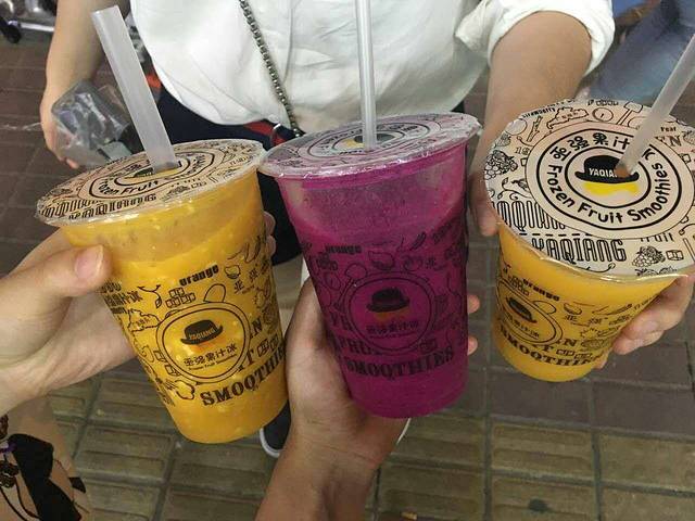 在走回酒店的路上看见很多人排队的亚强果汁冰,这么火的东西肯定好吃。