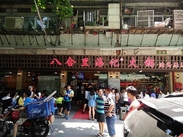 成功和2位小伙伴会师后,我们就到了这家八合里海记火锅(汕头总店),中午都在排队,还好我们5个人是一个大桌,前面只有2桌还在等待。在店子的对面是八合里海记专门卖丸子的门面。