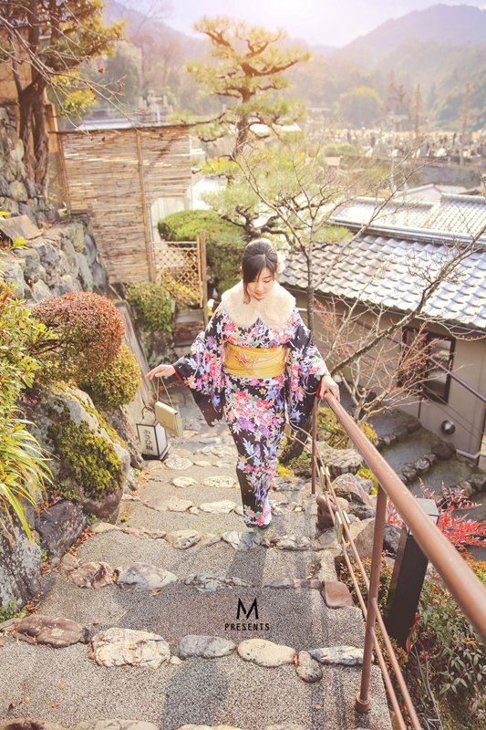 京都没太阳的时候比较冷,要穿羽绒服或者大衣,穿和服的话会很冷,和服里面能多穿点就多穿点