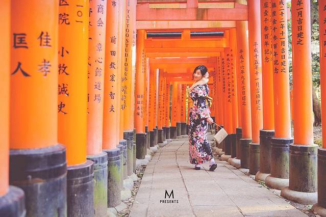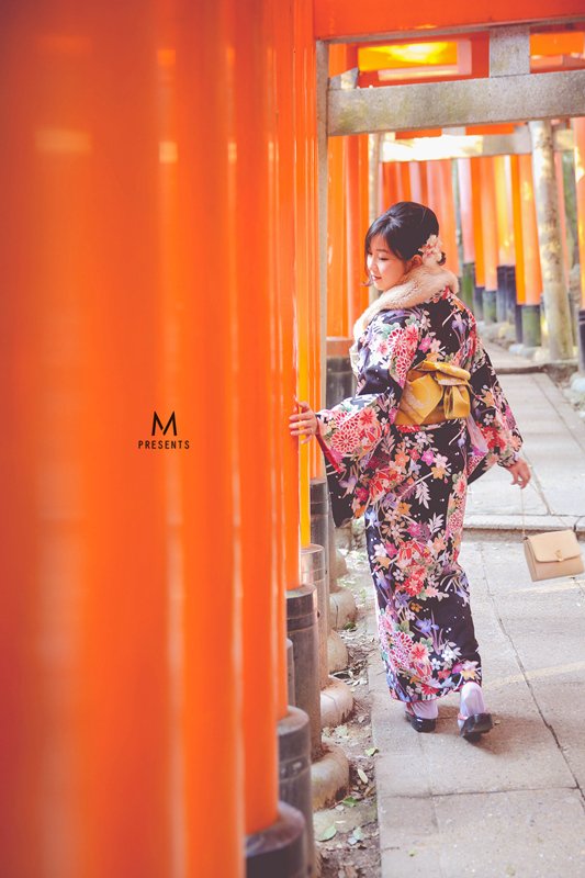 逛街吃东西就花掉大把时间。。。和服走路也不方便又很冷,所以直接打车去了伏见稻荷