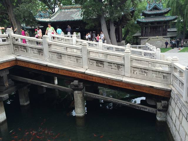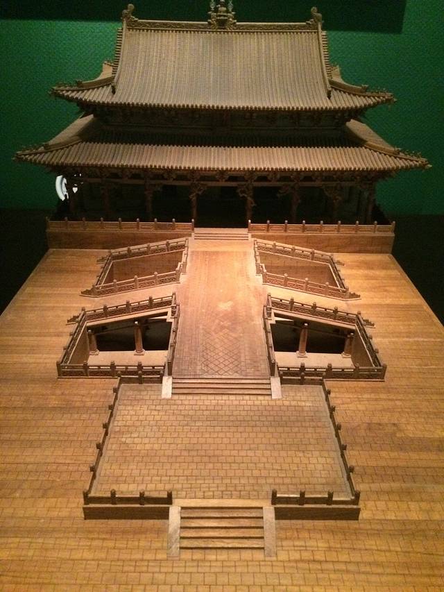 鱼沼飞梁,在圣母殿与献殿之间,古人圆者为池,方者为沼,沼中多鱼,故曰:“鱼沼”;其上立架十字形桥,“架虚为桥,若飞也。”故曰:“飞梁”。