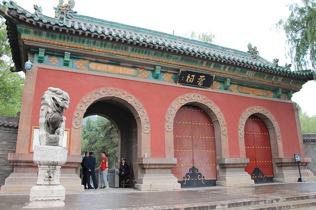 明代铸造的铁狮子,这两尊铁狮子和别的地方的狮子摆放位置不一样,面对门看去,左边的是公的,右边的是母的,是因为当年捐建出钱最多的一位女性,她就提了一个要求把代表女性的母狮子放在右边,从门的方向看过来是左,古时左为尊。