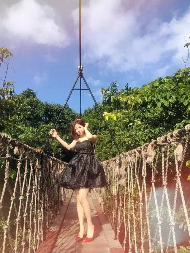 先去无诚勿扰中的过江龙索道,不知道这天上午我们抽什么风,直接把晚上跨年的礼服和高跟鞋穿着去