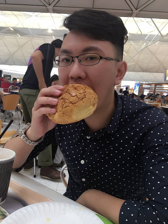 因为转机便宜加上国泰航空的服务我们比较中意...选择了香港转机~下机吃个菠萝包哈哈 看看狒狒先生的样子