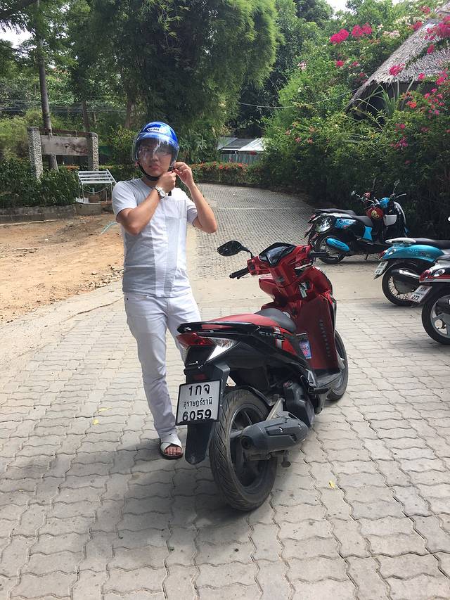 用完早餐狒狒又出花头了,要出门去转转。要骑摩托车...难道这么贵的酒店...我们不该在酒店里静静装xx吗?