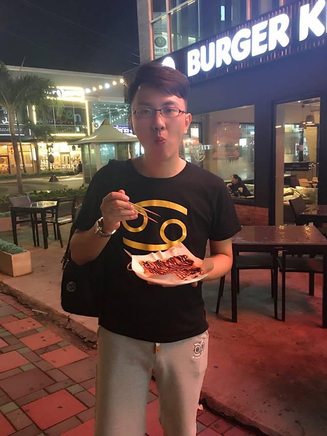 问小摊老板,这个像豆子的是什么,无奈老板中文和英文都不会...只是很着急的告诉我,不可以吃我国人形象已经这么鲜明了吗