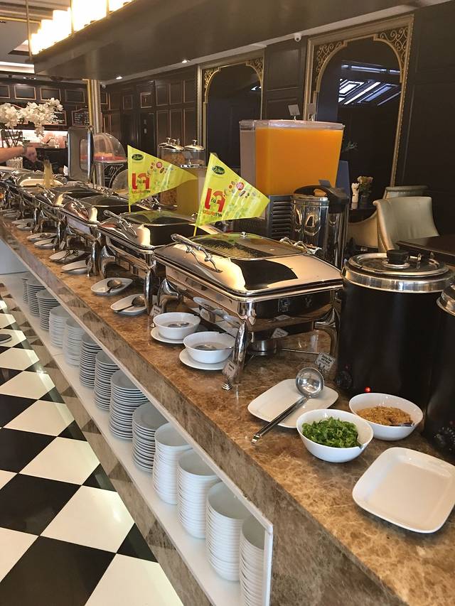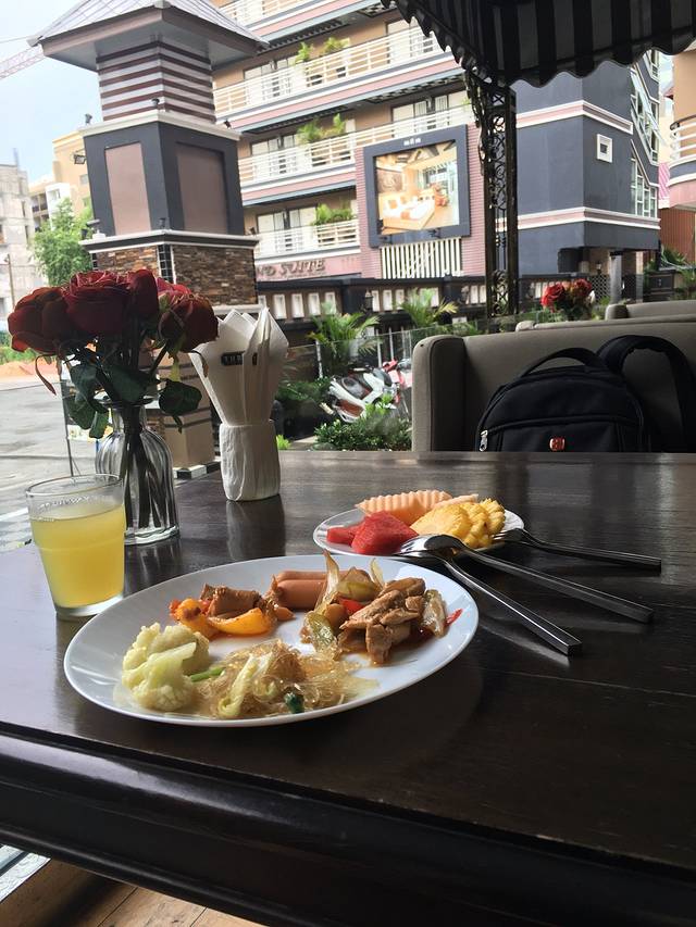 边吃早餐边等人来接!吃的还不错吧!秒超国内300多一晚的酒店了