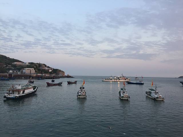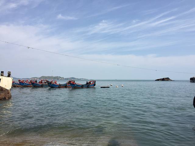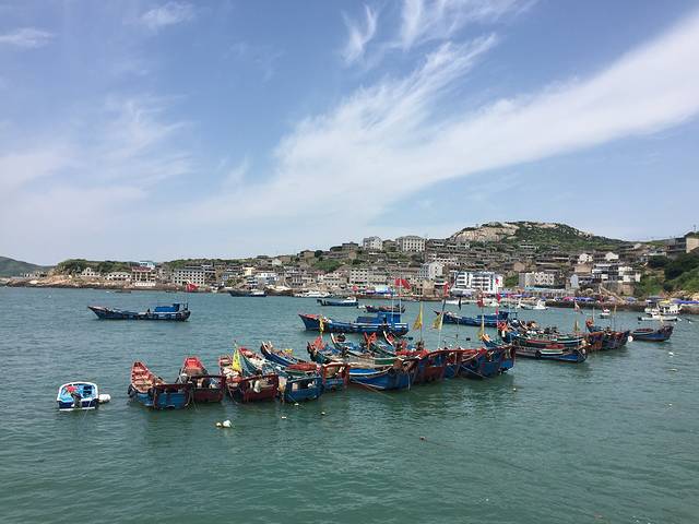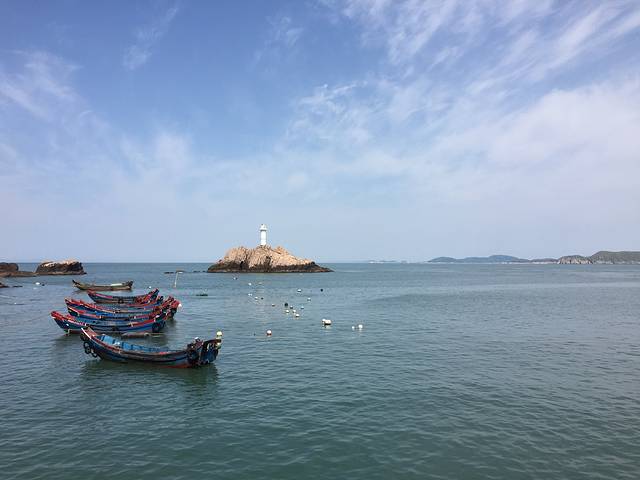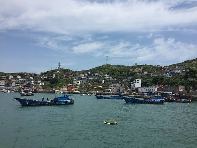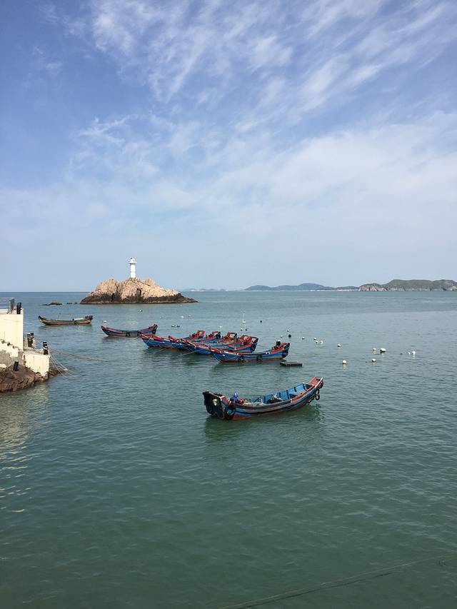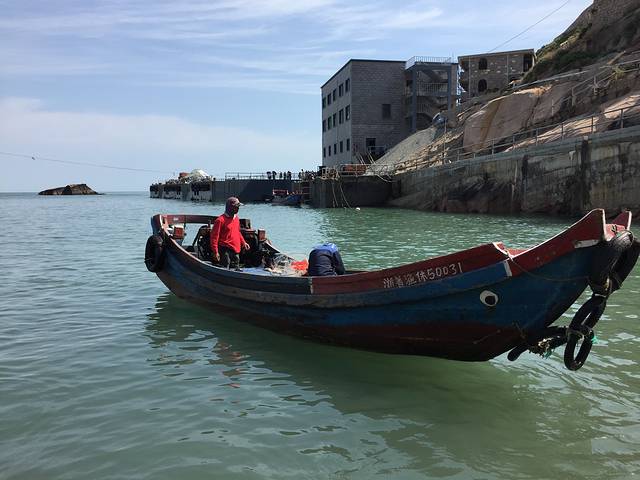 先来科普下,东极岛由四个岛屿组成,庙子湖,东福岛,青浜岛,黄兴岛。庙子湖相当于东极岛的镇,岛屿最大,人口最多,也最商业化,去东极岛的船都是先到庙子湖再转船的。黄兴岛人最少,没怎么被开发的地方,主要是去垂钓的多。青浜岛号称海上布达拉宫,在船上我们看到确实也差不多,房屋都是一阶阶的,有点那个味道,但是由于时间有限我们并没有登岛。我们首战就选择了东福岛,位于最东端的岛屿,远海肯定景色最美。网上也都力推东福岛,所以我们就直奔东福岛去了。