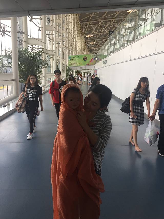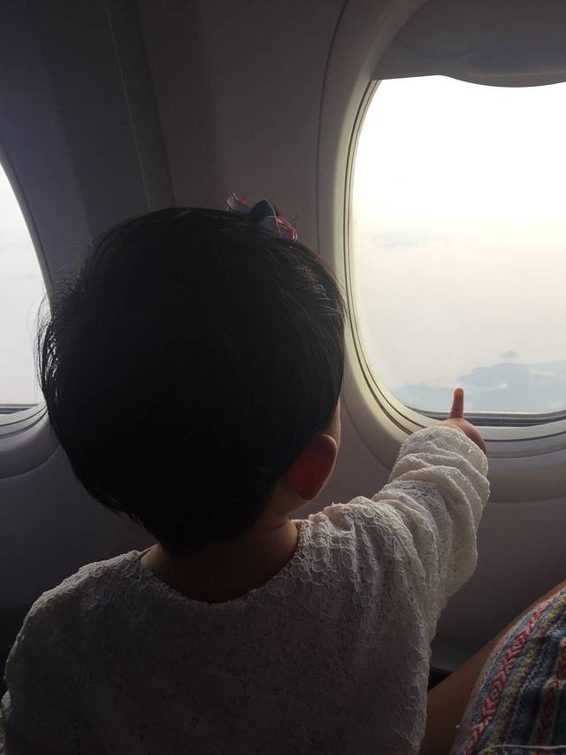 小家伙一上飞机就睡了,这点也真是省事,不用担心她闹腾了,直到下飞机的时候才醒,她也是充满了好奇,从她的小眼神里看出她的新鲜感和疑惑感随之而来的是兴奋感。