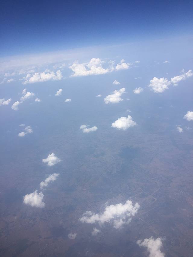从飞机上往下望去全是海,由于光线原因黄色的海面看上去像沙漠,直到到了舟山上空才看见大大小小的岛屿