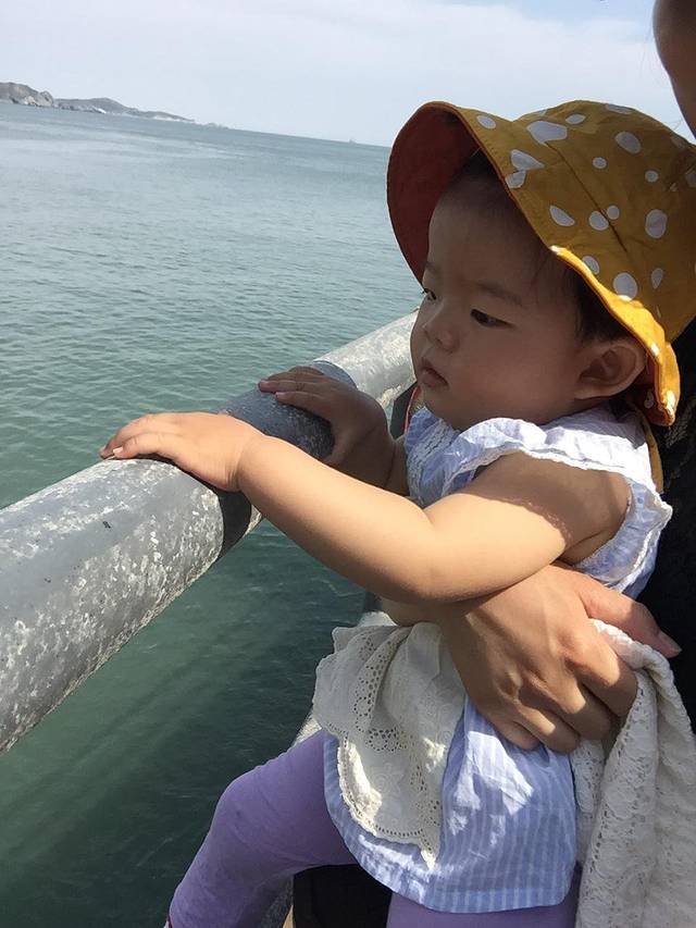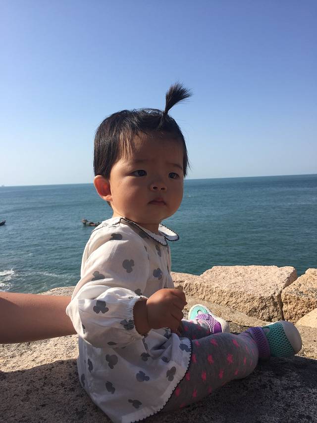本来想四点钟起床一个人去看日出,毕竟是第一缕阳光照射点,海上日出单是单是想象就让人感觉美到窒息,可惜我懒得并没有起来,哈哈哈,岛上五点多就热闹起来了,远处的号角声一声接一声,早睡早起在这里真得到了最好的诠释,感觉在号角声中醒来是一件特别浪漫的事,等我们七点起来的时候,和我们一同住宿的人都已经收拾行李走了,看来大家都去看日出了,只有我们三个在呼呼大睡,哈哈哈。早晨的海特别平静,而且很透亮的感觉,照片随便一拍就有大片的感觉,特别好看,小安如依旧很兴奋,不知道她能不能从爸爸妈妈的话语以及所见中了解到大海的概念。