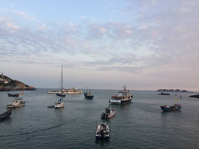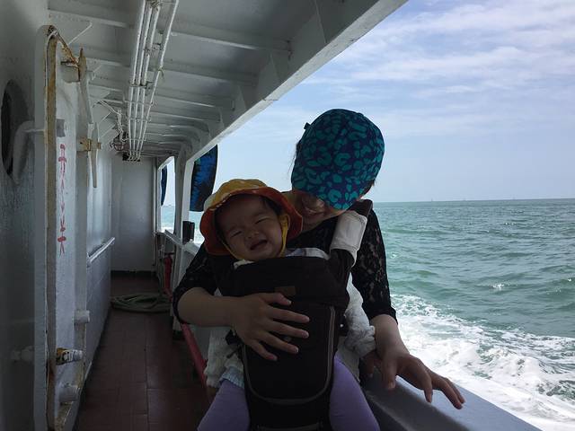 从沈家门码头是八点四十五发船,一天只有两班船,真的是一票难求啊,分上中下舱,150.130.100一人,其实买下舱票最好,最安静,最稳,也不透风,宝宝在里面睡觉不用担心着凉。想拍照的话其实都是可以随意走动的,中舱人最多最吵闹。从庙子湖到东福山船票30.而且是从船上直接转船,特别带劲,但是完全不用担心掉下去,两边船员都会拉你过去,抓你胳膊抓的特别紧,哈哈哈