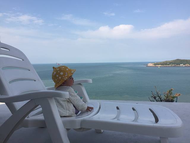 在飞机上听广播说舟山地面温度21度,我就心情雀跃了,济南温度可32度啊,21度好凉快,一下飞机就觉得凉凉爽爽的,天气是真的好,而且天空蓝蓝的,让人很舒爽,立马让人有了种来消夏的感觉。我们直接打车去了定好的民宿,舟山本来就是个岛屿,所以都不是很大,打车很便宜,而且到的时间也快。此行感觉出门定民宿真的超级超级方便,孩子不仅能吃好,大人也能吃到地道的本地菜,还能住的舒坦,我们到了之后房东叔叔阿姨就开始给我们准备晚餐了,真的超级棒。真的有种回家的感觉,我们去的那天只有我们一家人,我们住在楼上,有客厅有卫生间,还有露天阳台,真的超级棒。而且我们吃饭的时候,叔叔阿姨还会帮我们看宝宝逗宝宝,感觉太轻松了,一点也没有之前出门就是出门的感觉,就像在家出去玩,孩子也不会觉得累。这次之后我感觉我爱上了民宿。