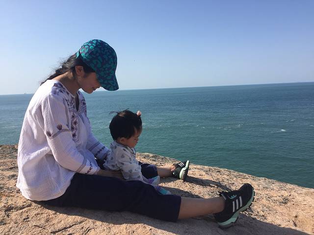 中午休息了一会,我们差不多两点半就出门了,房东告诉我们,岛上日落比较早,所以我们得尽早出门,要不然天黑就看不到路了。结果我们磨难般的东福岛之行就开始了。因为海岛辐射强,风又大,出门的时候我们都觉得大中午的还得顶着烈日,不容易阿。想象中的东福岛是沙滩,热浪,美景,结果我们只看到山路,一望无边的山路,啥沙滩热浪都真的是想象的,苦逼啊!开始我们都以为在后面呢在后面呢,结果一直往前走往前走,走了一个多小时的山路,终于看到一处茶点,告诉我们环岛还得四个小时,我们都想打退堂鼓了,因为还带着宝宝,我们真的就是在爬山啊!太累了!爬山根本就不在我和龙哥带着宝宝的计划里,不过幸亏听我的出门带了腰凳,要是听龙哥的我们带小推车,估计我俩真得没法走了,哈哈哈。