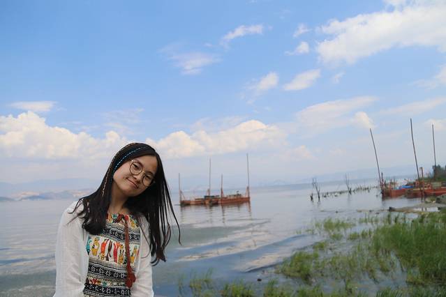 司机大叔介绍了很多大理白族的文化,说白族姑娘头上戴的头饰上有着“风花雪月”的含义。在白族少女的头饰上,垂下的穗子代表下关的风;艳丽的花饰是上关的花,帽顶的洁白是苍山雪,弯弯的造型是洱海月。将自然风光融入民俗,成为自己的文化。
