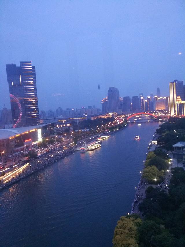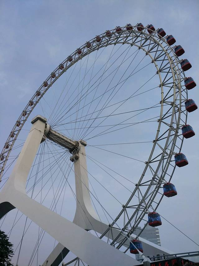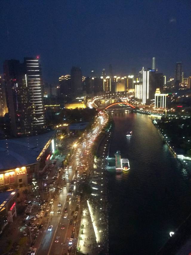 果然人很多,下午4点30分开始排队,晚上7点才进入买票区,70元/人(无学生票)。想看夜景,便查了当天日落时间,在等候区等了30分钟,我们再排队坐摩天轮。19:30-20:00,整圈耗时约30分钟,经历了白至黑的景观变化。慕名而来,毕竟是天津地标,感受过一次其实也够了。