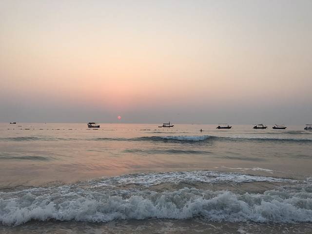 原来以为涠洲岛的南湾,就是这样让我失望,后来听当地人说,南湾在休渔期,水幼沙清,这里还有旧码头和海鲜市场,远处还有像挂在天上的船……因为左边的猪仔岭和右边的火山口公园环抱,这里还是涠洲岛唯一最美的海湾,只是这个味道,这里的火烧云会让你觉得像仙境一样,