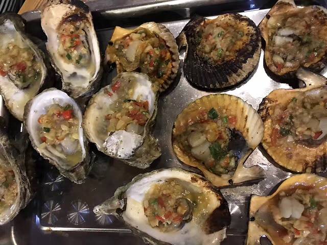 一个人吃了三十个多生蚝,十块钱五个,蒜蓉香喷喷,辣椒也很爽,还有鲜嫩的虾饼,炸昆虫,芒果汁沙冰,北海的物价,即便是老街,也比涠洲岛便宜不少,只不过感觉海鲜品种不多,只是味道更加专业化。。吃饭饮料,有一家只卖龟苓膏的店,特别好吃,吃食是120,还把我吃的撑了。
