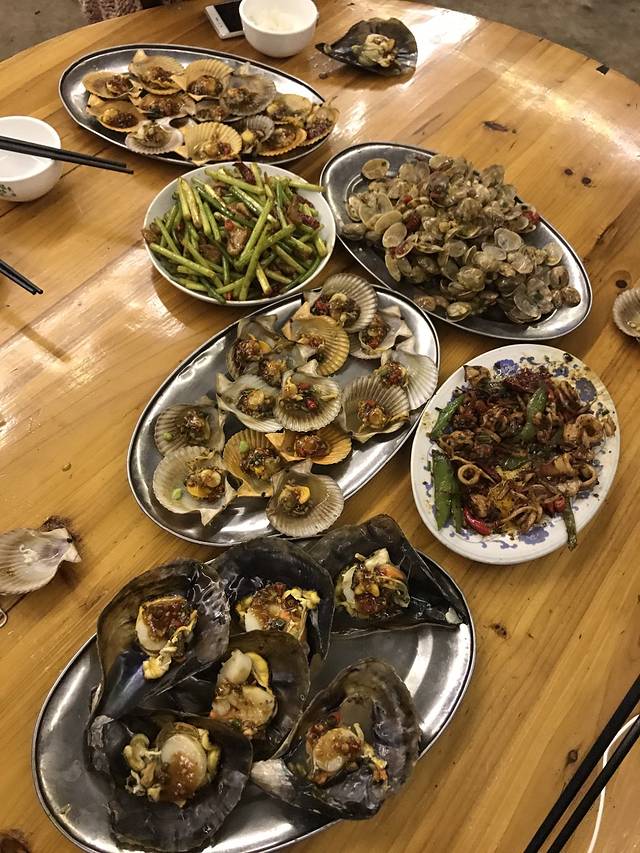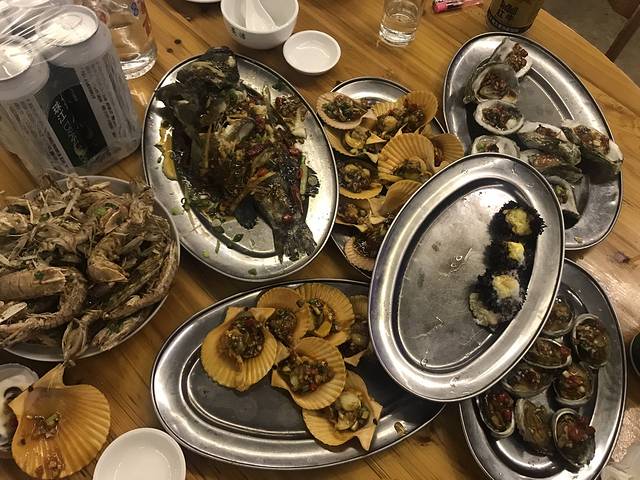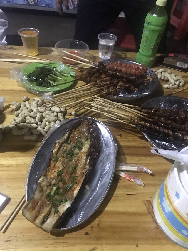 今天晚上回来又是贝壳沙滩了,跟着新认识的妹子去了他们的客栈,所以当我客栈老板,帅帅的代班老板来的时候,又已经天黑了了,回去的路上,去了岛上的湾背吃烧烤。是岛上专门部队门口。岛上当地人开的烧烤并不辣,都是海鲜酱,微微鲜甜。