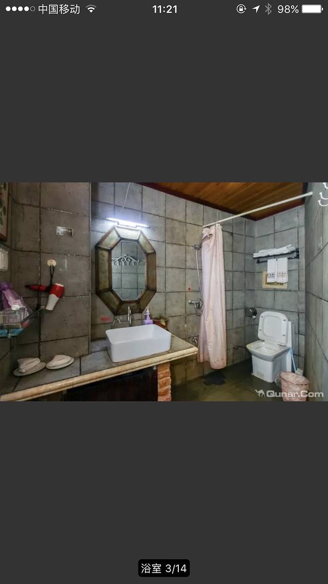 去哪儿网订购单间,也是1.8的大床,装的美式乡村风格.洗浴齐全,所以我每次都会自带,也能感觉到老板的用心。不方便之处是没有阳台晒衣服。比较潮湿,可以开空调。不过瑕不掩瑜。