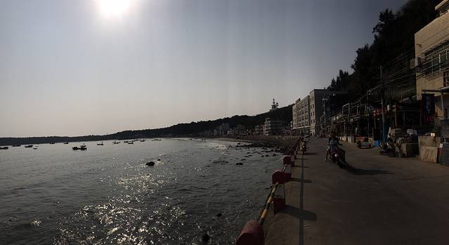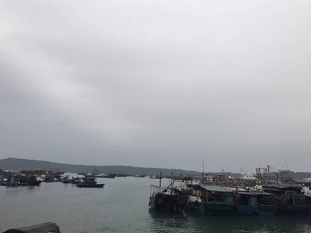 下午五点多的海,没有退潮,远处都是大大小小的渔船。
