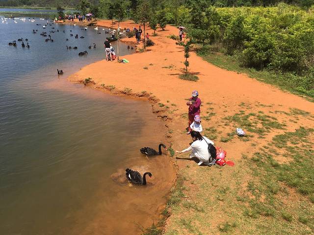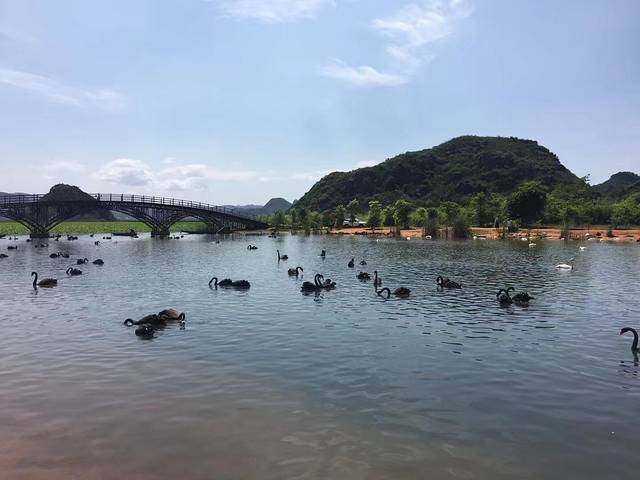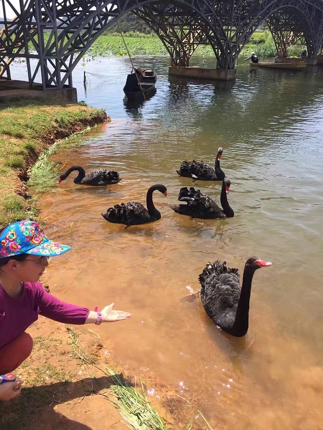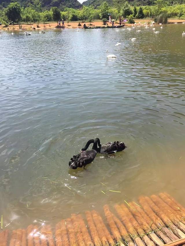 普者黑风景区看黑天鹅