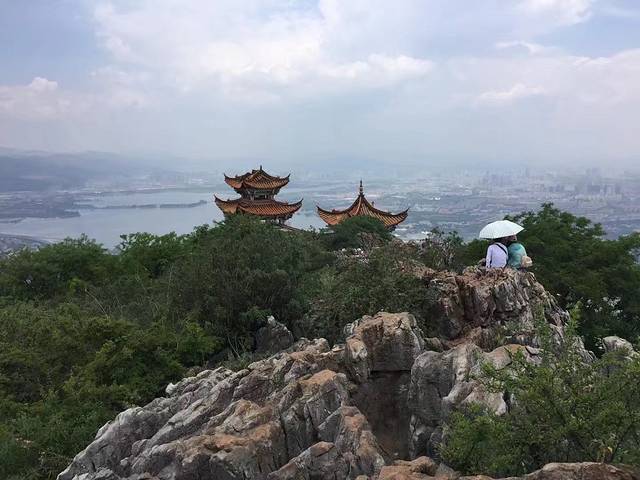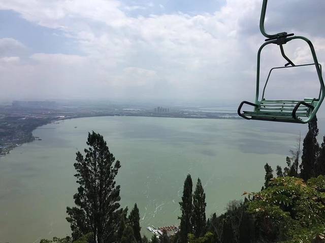 图片看的就是滇池风光,这个缆车的安全系数不高,有小孩子的话,大人一定要注意,最好自己也有带个安全绳之类的,还有这个缆车不遮风避雨的,天气热的话要打伞,两个人一起撑一把,缆车上去的时间其实挺久的,感觉有超过半个小时,晒得不得了,手撑伞久了也很酸