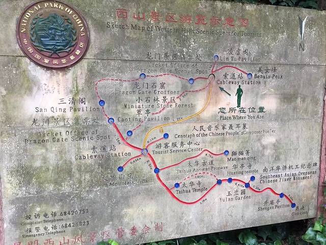 网上买的门票65元,很划算,坐的缆车可以看西山风景,要爬到最高处,还要缆车下来后再往上爬,爬上去可以看到滇池的风光