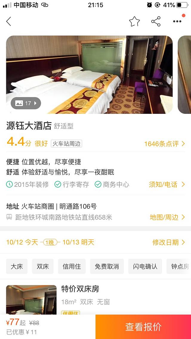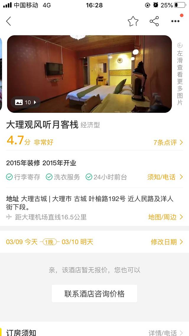 房间内网络不好,就是看在价格便宜才120元双床,而且在古城里面景点都在附近