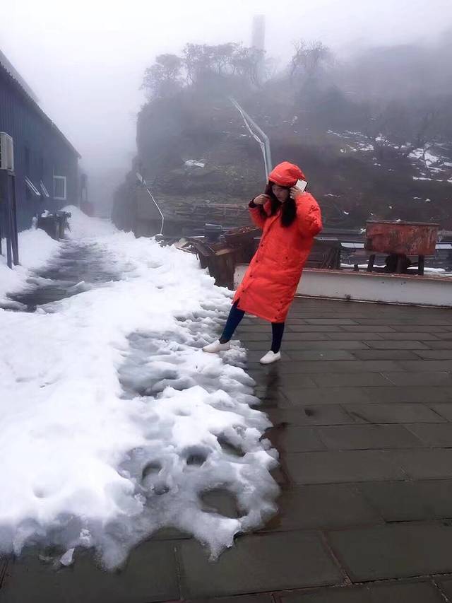要坐索道的时候那里有羽绒服租借,我们压了身份证一人一件,一件租50元,真的不租的话上去会冻死,上面就是雪山,坐在缆车里风都一直跑进来,冷的要死