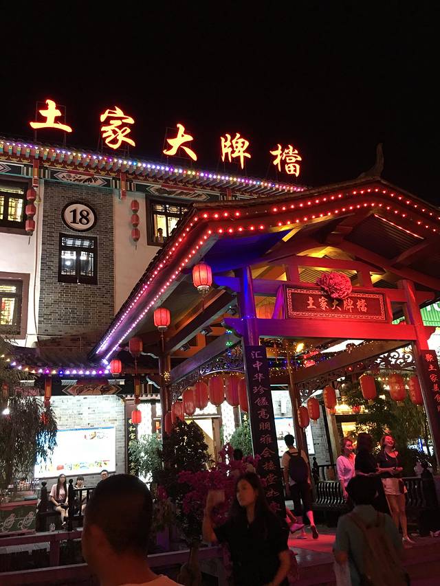 28号上午十点多自驾游从十堰出发(不是我赖床哦,是老公早上有工作耽误了),然后就是七个多小时的车程,在此我要特别感谢老公,不辞辛苦,开了那么久的车,还要陪我聊天,还好早起在家备了好多便当,三明治,水果,饮料,还有热好的粽子,一路上吃吃喝喝,也不无聊,下午六点多到了土司城附近的酒店,节假日稍涨了些价,但还好离土司城很近。原计划28下午逛土司城,29号一早去腾龙洞的,天色已晚,只好把土司城改到第二天了。在酒店小憩了一下,我们决定去女儿城吃点好的,出门打了个车,一上车就要50,5里路要50,太坑了,果断下车,自己开车过去,只是又辛苦老公了,女儿城很热闹,夜景很美,很多美食,小吃,还有土家特色的建筑,博物馆,我们在大众点评上搜了一下美食,去了人气很高的土家大排档,菜品很不错。