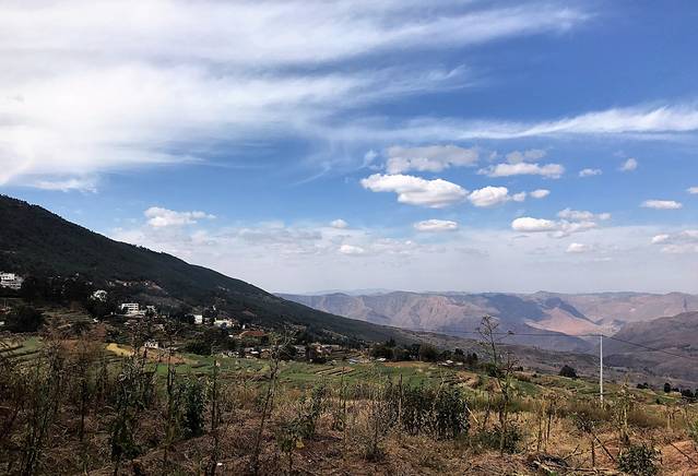 从元谋土林到己衣镇需要倒回G5高速的元谋县城南面的猫街镇,再岔到老的国道108,经高桥乡往东到另一条武定县域的南北向的乡村公路, 有路标指示转入去己衣的乡村公路,虽说是乡村公路,但全程柏油路,不过是盘山道,一个又一个的发卡湾,把后座的燕子都颠吐了。