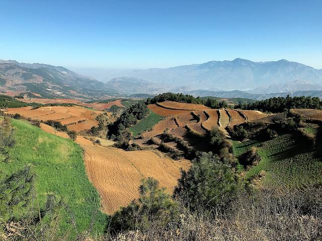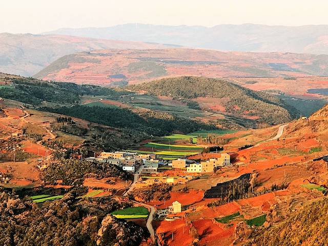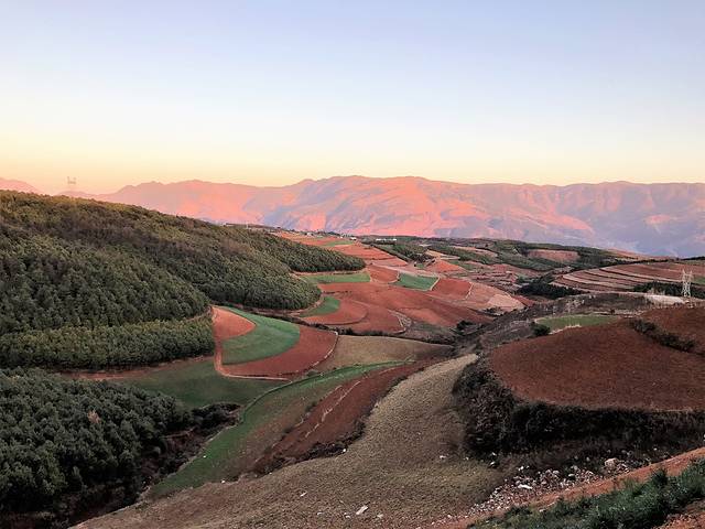 玩到18点左右,我们决定赶到蒙自,当地人告诉一条近路,从这里直接往西经过弥勒市的东山镇可以插到昆河高速上,快到东山镇时,山坳里的红土美景验证了我之前说的——云南处处有红土地,没必要非去东川拍!