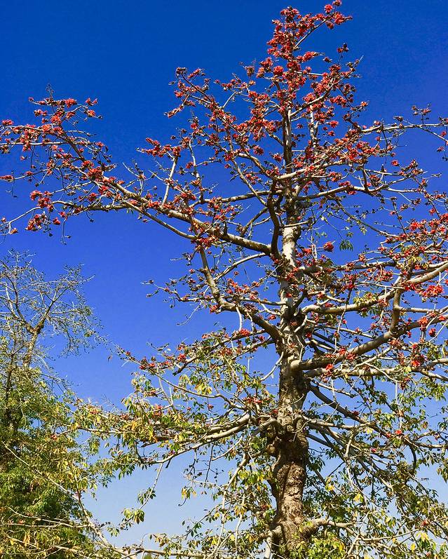 火红的攀枝花和木瓜树,说明江底的气候已经具备热带特征了