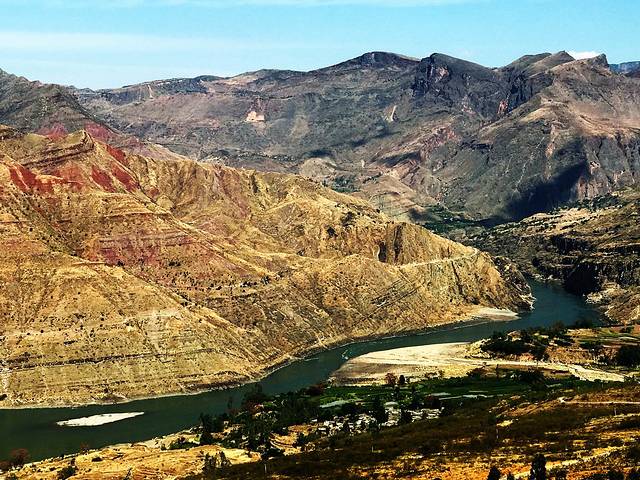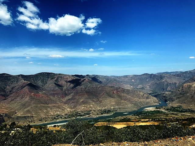 第2天早晨起床问清去金沙江渡口的路径——就在进己衣镇的前面3公里左右的路边,有一条向山坡下走的水泥路,又是一大串发卡湾,走走停停,喜欢对着远方的金沙江,拍各个角度的江湾,结果1个小时才下到江边,对面就是四川地界儿。