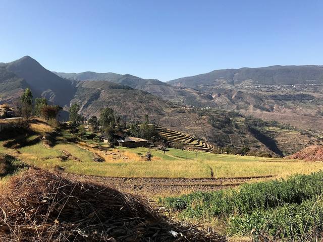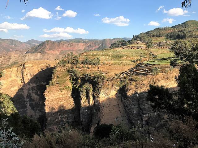 走过上面这片梯田就是个停车场,下车步行50米就是大裂谷的入口,考虑到太阳已经快落山了,拍了几张照片又倒回镇上找客栈,准备第2天中午再下去。