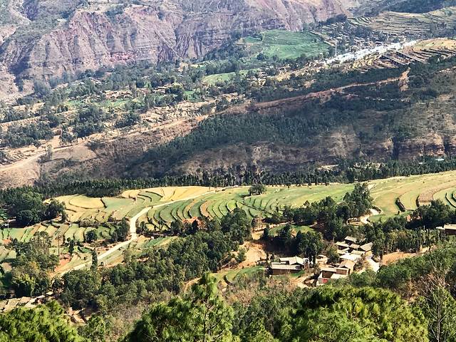 拍片子时没想到第2天我们会去对面山头上(右上角)的那片白房子,否则拉近拍一张。