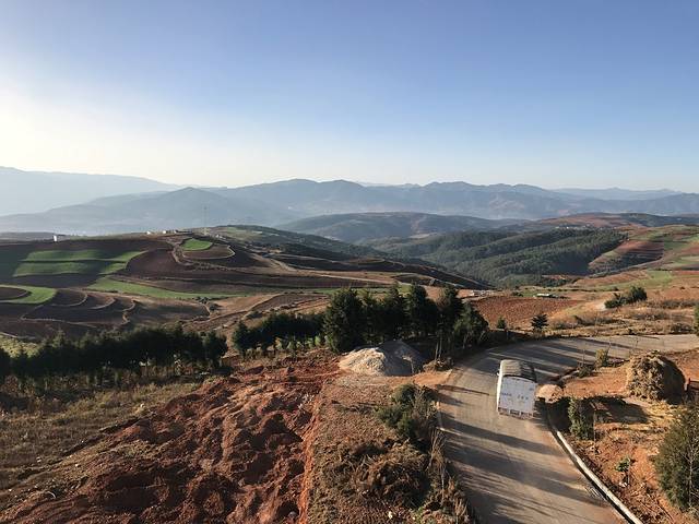 吃饱喝足后,和那对柳州夫妻告别,他们南下昆明拍海鸥,我们北上会泽看黑颈鹤,开了40多公里,就看到了山洼里的东川市区,世事变迁,八十年代以前,东川曾经是云南仅有的三个市(省会昆明、滇南个旧、滇东北东川)之一,10多年前,被弄成昆明的一个区,和昆明并不接壤,中间还隔着一个县呢?!搞不懂这样的行政划片有什么意义?!